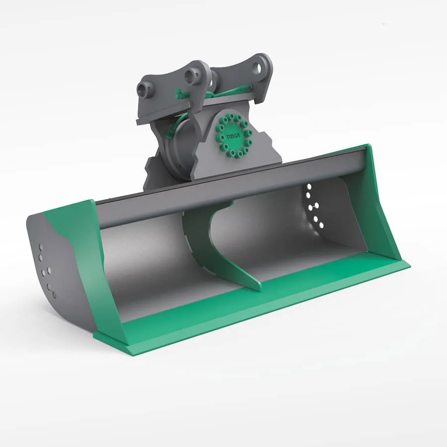 The tilting bucket WR for heavy-duty conditions is designed for ditching, grading, leveling and other finishing work. Tilting is powered by a maintenance-free, long-life hydraulic motor.